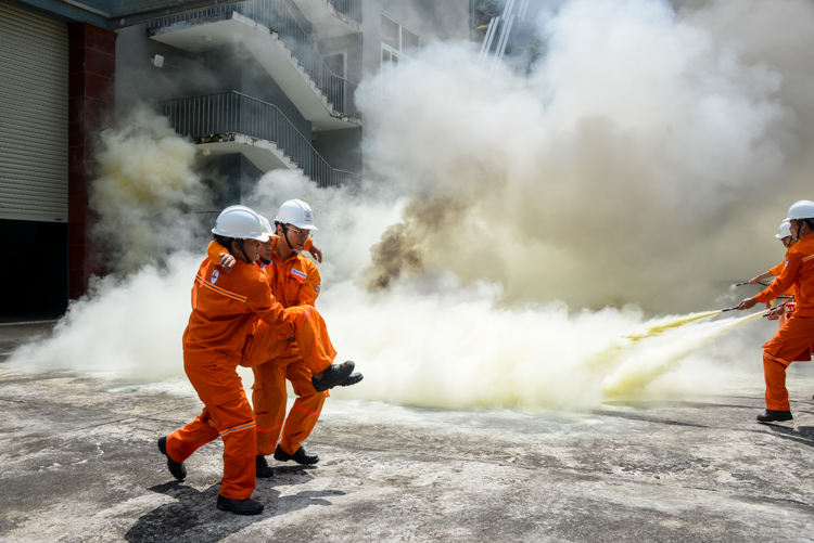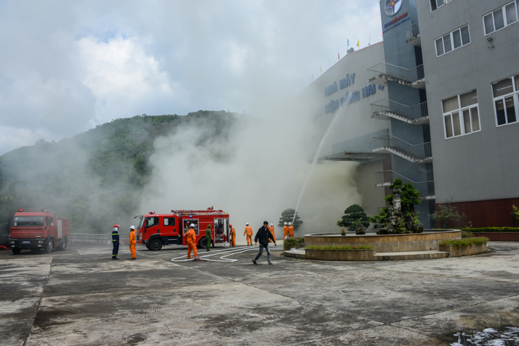Theo tình huống giả định, đám cháy xảy ra tại khu vực thiết bị của nhà máy. Lực lượng PCCC cơ sở nhanh chóng báo động, cắt điện khu vực cháy, sử dụng bình chữa cháy CO₂, bột khô và xe chữa cháy chuyên dụng khống chế đám cháy, hướng dẫn công nhân thoát nạn, sơ cứu người bị thương. Ngay sau đó, lực lượng PCCC chuyên nghiệp có mặt phối hợp dập lửa, giải cứu nạn nhân mắc kẹt và xử lý tình huống theo đúng quy trình.