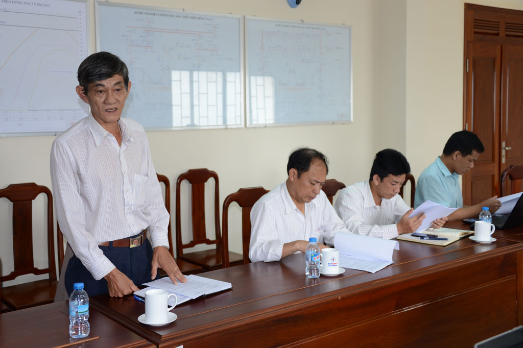Ông Hồ Sĩ Hưng trưởng phòng Kỹ thuật trình bày báo cáo công tác quản lý an đập thủy điện Đồng Nai 3, Đồng Nai 4.