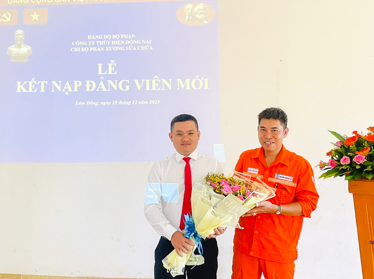 Căn cứ điều 4 điều lệ Đảng cộng sản Việt Nam, Căn cứ quyết định số 881-QĐ/ĐU ngày 20 tháng 11 năm 2018 của Đảng ủy Tập đoàn Điện lực Việt Nam về việc ủy quyền cho Đảng ủy Tổng công ty Phát điện 1 được quyết định kết nạp Đảng viên. Thực hiện Quyết định số 331-QĐ/ĐU ngày 8 tháng 12 năm 2023 của Đảng ủy tổng công ty phát Điện 1, sáng ngày 28 tháng 12 năm 2023 Chi bộ Phân xưởng Sửa chữa thuộc Đảng bộ bộ phận công ty Thủy điện Đồng Nai đã tổ chức lễ kết nạp đảng viên mới cho quần chúng ưu tú Võ Nguyên Trưởng.