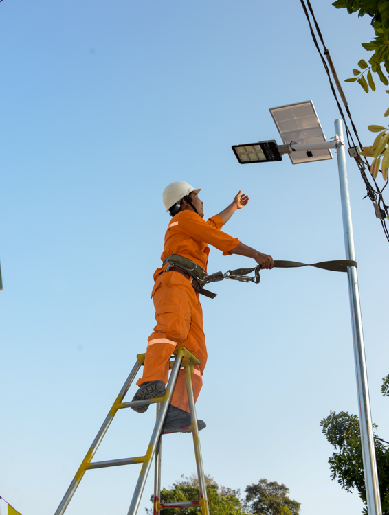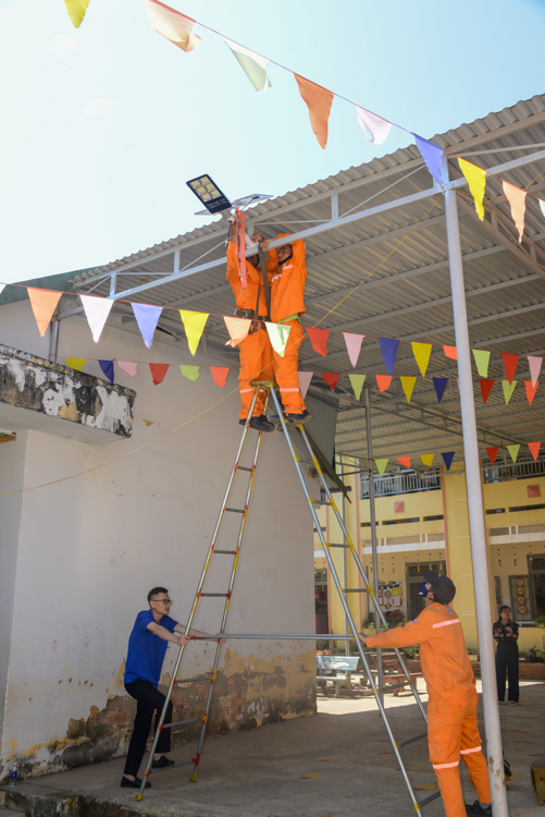 Lắp mới các bóng đèn năng lượng mặt trời chiếu sáng sân trường