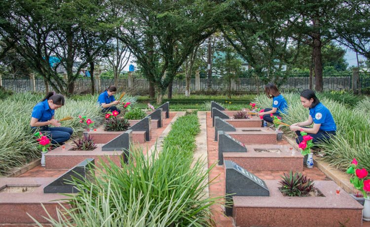 Đoàn viên thanh niên Công ty thắp hương tại nghĩa trang liệt sĩ TP Bảo Lộc